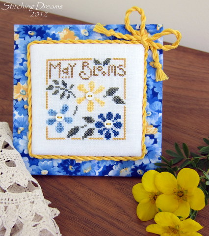 Good morning, my stitching friends! I hope all of you here in the U.S. enjoyed a relaxing and fun-filled Memorial Day weekend. I was so happy to have my youngest son home from Washington, DC. for four days--I hadn't seen him since early February, so it was the first time all five of us had been together in nearly four months. How I enjoy watching my three now grown "boys" together--they always have me in stitches with their antics, teasing, funny songs, and family jokes. In between visiting with them and cooking and cooking and cooking (I'd forgotten how much food four males can put away!!), I did manage to put the finishing touches on my bowl of May smalls...