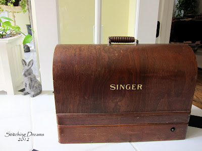 I wanted to share some of the goodies that came home with me from that cleaning weekend. I chose the sentimental things--nothing of much value except for the memories they invoke. I asked my mom if I could take Grandma's vintage Singer sewing machine--and she said yes! I just love the pretty Bentwood dome case it came in, complete with its own little key to open it up. The cord is pretty frayed so I'm afraid to try it out...perhaps I should get a new cord made. Does anyone have any experience with cleaning and refurbishing these old machines?