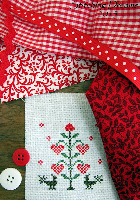 I needed some bright colors after all the white and gray our winter has brought this season so I've been working on a few cheery little Valentine finishes--and guess what? All of them are freebies! I am always so grateful to the talented cross stitch designers out there who share their creativity with us in the form of freebies, aren't you? It is a wonderful way to introduce us to their larger designs, too.
